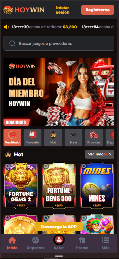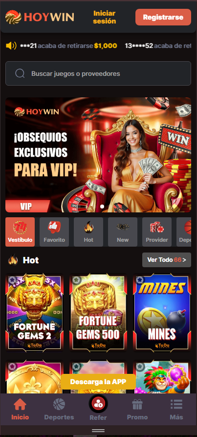 Con la aplicación Hoywin, accede a la oferta completa del casino Hoywin: tragamonedas, blackjack, póker, ruleta y apuestas deportivas. La casa de apuestas Hoywin garantiza velocidad, estabilidad y la máxima seguridad. Cada momento de diversión se convierte en una experiencia VIP que solo Hoywin México puede ofrecer, directamente en la palma de tu mano.